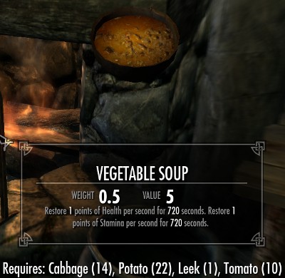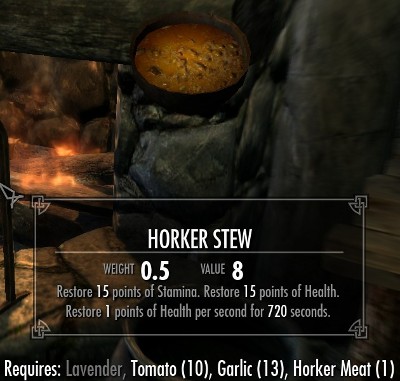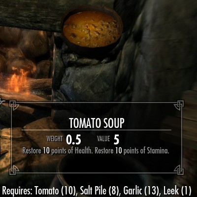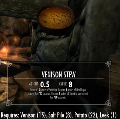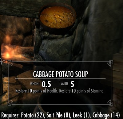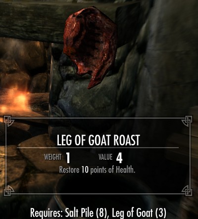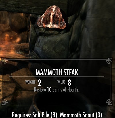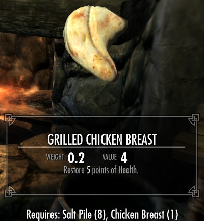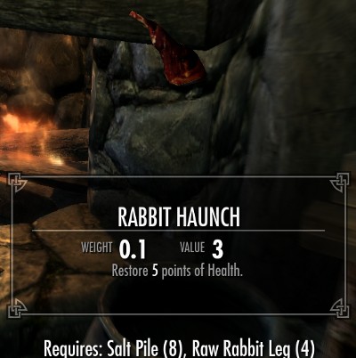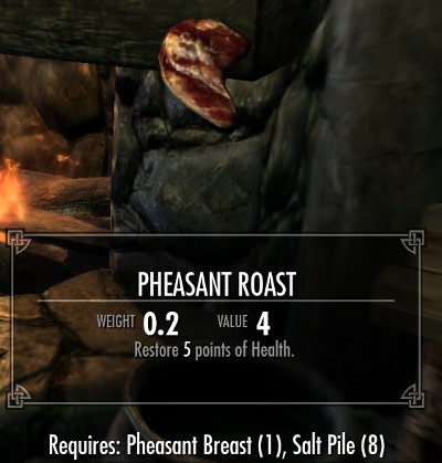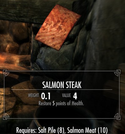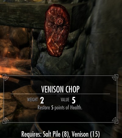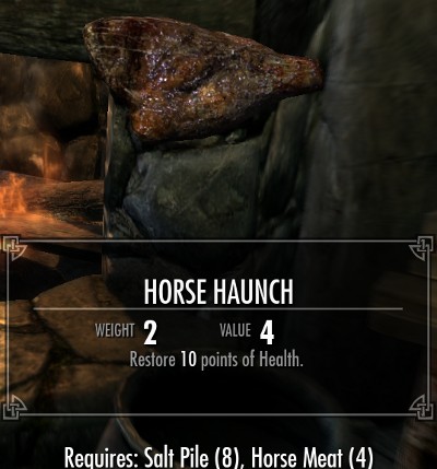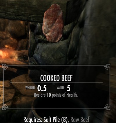 料理は全部で18種類のレシピが用意されています。全てのレシピは肉類とその他の食材の組み合わせです。10種類が肉と塩の2つの食材で、8種類のレシピが肉とその他の3種類の食材からなるレシピです。多くのレシピでは塩の固まりが必要になります。